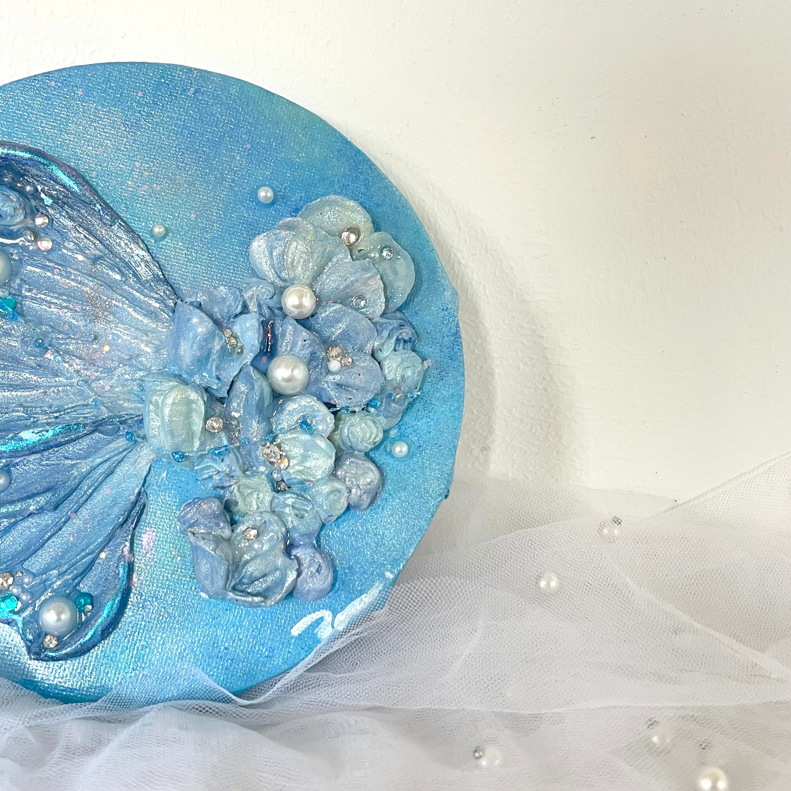 蝶々を小さくて丸いキャンバスにそっと描きました。