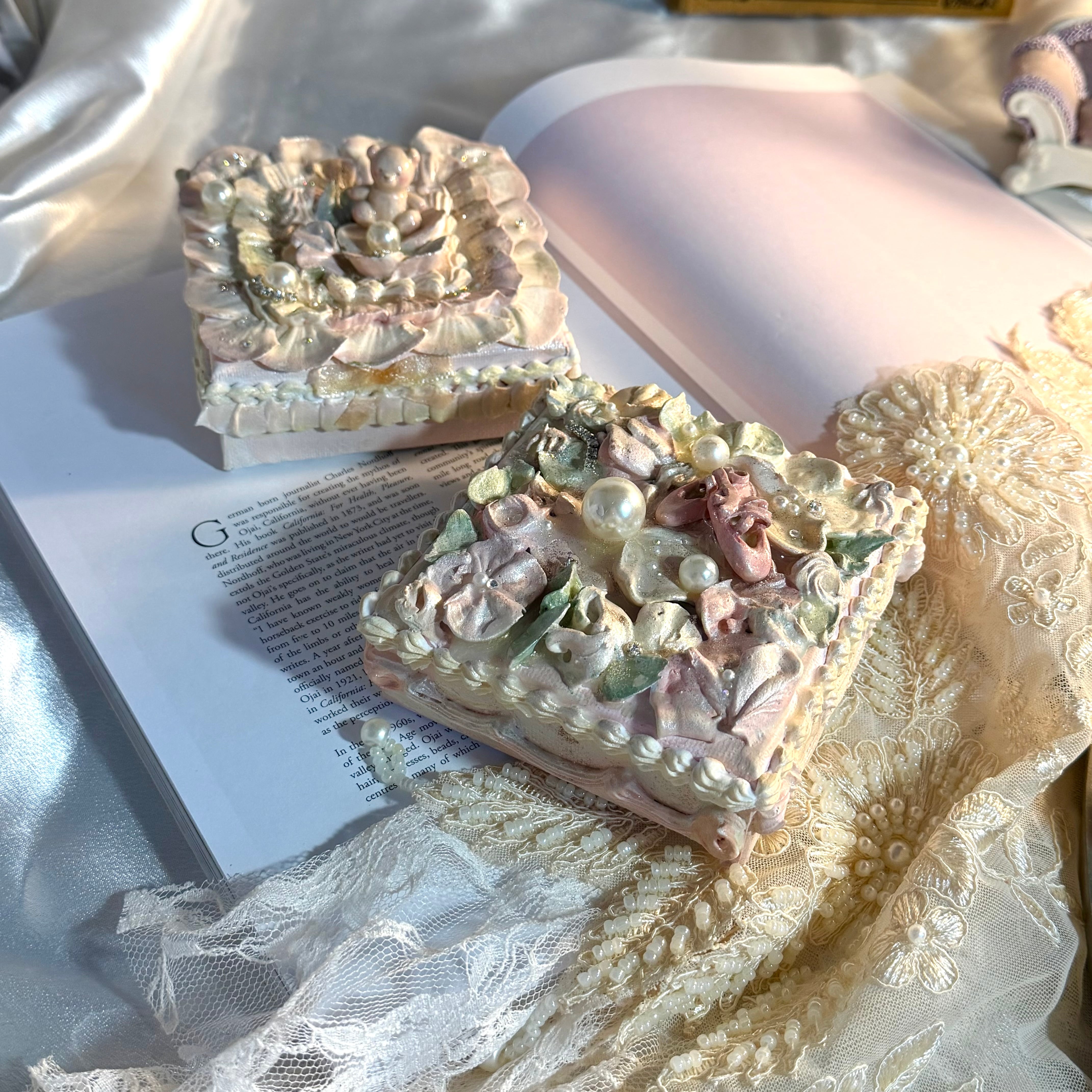 小さい四角いケーキのような作品。