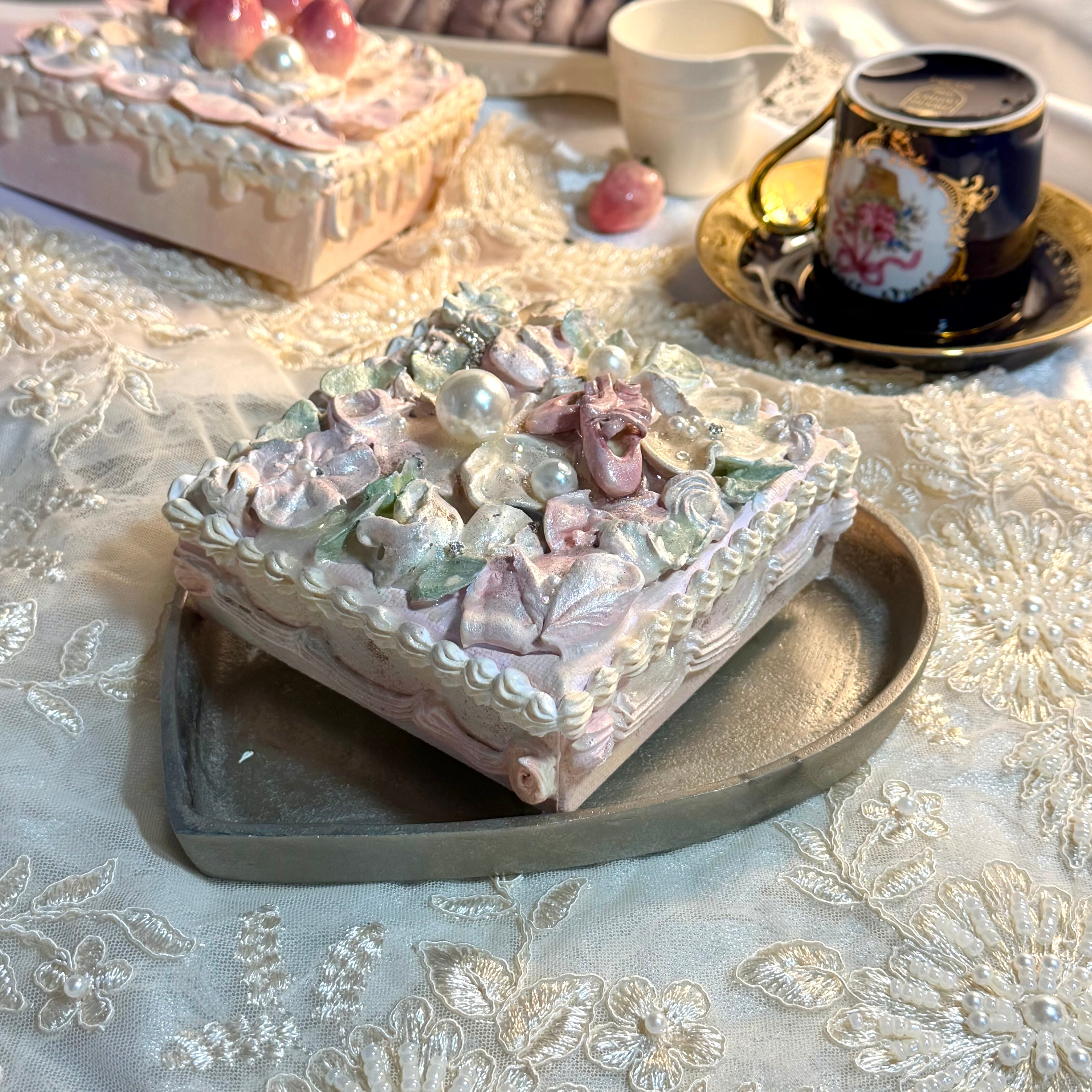 発送の際は透明ボックスに入れて実際のケーキのように梱包させていただきます。